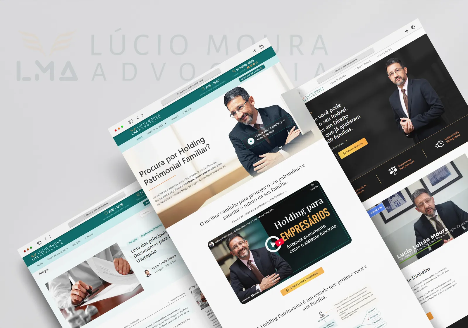 A partir disso, foi realizada a atualização da identidade visual, seguida pela criação de materiais digitais, redes sociais, website completo e conteúdos em vídeo voltados à divulgação dos serviços jurídicos.